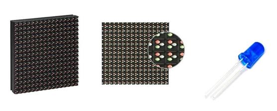 Chaque pixel LED à la surface d'un module LED DIP est composé de trois LED : une LED rouge, une LED verte et une LED bleue. La LED RVB sert de base à tout écran LED couleur. Étant donné que les trois couleurs primaires (rouge, vert et bleu) sont les couleurs primaires de la roue chromatique, elles ont le potentiel de produire toutes les couleurs possibles, y compris les couleurs blanches.
