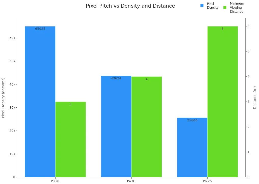 La résolution donne à vos images un aspect net. Si les personnes se trouvent loin, vous pouvez utiliser une résolution plus faible. Les panneaux d'affichage routiers fonctionnent bien avec moins de pixels. Pour les vues rapprochées, comme sur une place publique ou un centre commercial, une haute résolution est nécessaire. Cela améliore l'apparence de votre écran LED et captive l'attention des visiteurs.