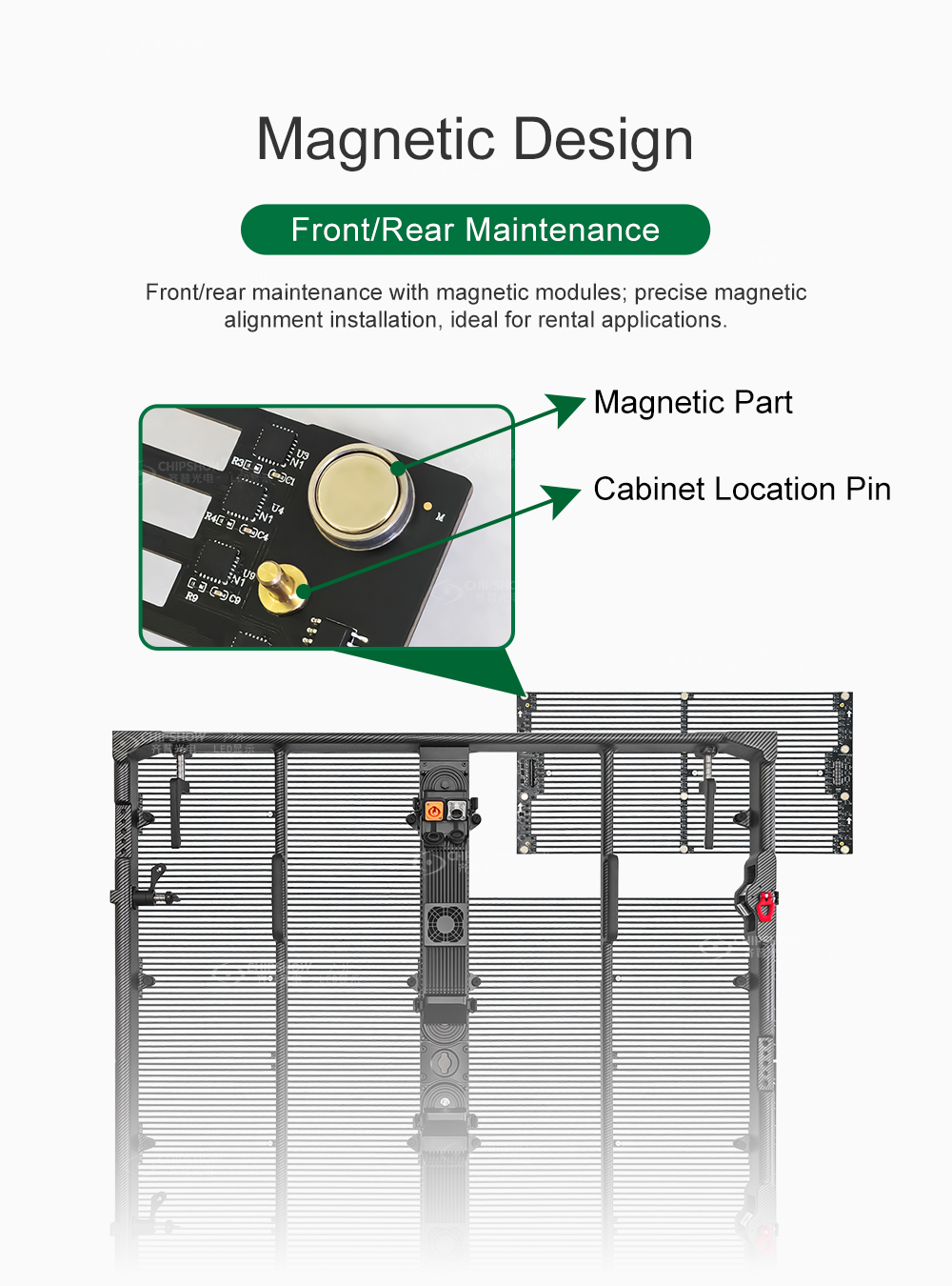3 Conception magnétique : la série C-Carbon prend en charge la maintenance avant et arrière ; grâce aux modules magnétiques, les armoires peuvent être localisées avec précision lors de l'installation ; et la méthode d'installation de location est très rentable ;