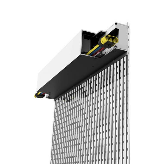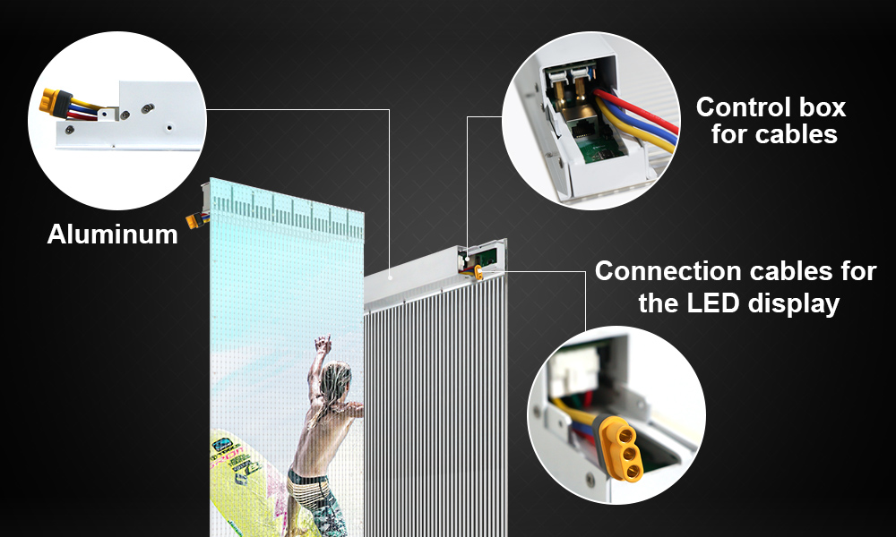 Les écrans sont épissés à travers une plaque transparente et les boîtiers d'alimentation sont épissés à travers des profils