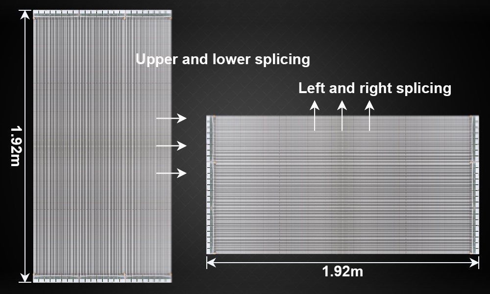 7. L'écran peut être épissé à gauche et à droite ou de haut en bas, ce qui peut atteindre une hauteur ou une largeur d'affichage de 1,92 mètres et un épissage illimité dans l'autre sens.