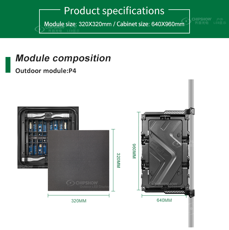 Caractéristiques du produit:1 Haute précision: les armoires adoptent l'aluminium à haute pression et la poubelle et La tolérance est inférieure à 0 1 mm; Cela garantit un assemblage précis des armoires, et La surface d'un écran entier aura une bonne planéité; 2 ultra-minces et ultra-légère: l'armoire est de 15 kg / ã ¡plus légère et 20% plus mince qu'une armoire en fer; Cela vous aidera considérablement réduire le coût de transport, et le coût de la construction d'une structure de cadre en acier; 3 fins multiples: l'écran du panneau d'affichage C peut être utilisé En tant que solution d'affichage fixe rentable, une solution d'affichage de location qui prend en charge l'installation suspendue et la solution d'affichage pour les clôtures de périmètre de stade; 4 conception de services avant: les modules LED prennent en charge le service de front; Par conséquent, en ce qui concerne l'installation murale, vous pouvez facilement assembler et démonter les modules; 5 Mise à niveau et remplacement faciles: les armoires peuvent s'adapter à nos modules P4 ~ P20; Par conséquent, vous n'avez pas à dépenser un coût supplémentaire pour remplacer les armoires si vous envisagez de mettre à niveau l'écran du panneau d'affichage; 6 Luminosité élevée: le niveau de luminosité atteint plus de 5500 CD / ã ¡; Même si sous fort Light, l'écran de panneau d'affichage peut toujours présenter des images claires; 7 Grade de protection élevée: la note de protection de la série C-Fit-Easy atteint IP65; Et ce type d'écran de panneau d'affichage est très adapté aux publicités extérieures à grand format, telles que la LED en plein air murs, et les écrans LED avec un système de pile au sol;