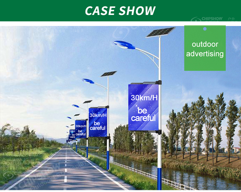 Caractéristiques 1 Les écrans LED sur poteaux sont soutenus par des cerceaux en acier montés sur des poteaux de lampe ; l'installation est donc assez simple et rapide ; 2 Cette série vous offre une méthode intelligente pour mettre en œuvre un contrôle groupé des écrans à LED sur poteau : vous pouvez contrôler massivement et à distance tous les écrans à LED sur poteau via le réseau 5G ; 3 Avec un indice de protection IP65, les écrans LED Pole peuvent être adaptés à une utilisation en extérieur tout au long de l'année ; 4 Les publicités imprimées sur les écrans sont remplaçables ; ainsi, lorsqu'il s'agit de publicité imprimée, les écrans peuvent être utilisés à plusieurs reprises après l'installation ; 5 La série C-Pole peut produire un fort impact visuel sur les yeux : vous pouvez éclairer les écrans des poteaux pour afficher des publicités 24 heures sur 24 ; 6 Il existe une grande capacité d’information ; vous pouvez créer vous-même des programmes riches et les lire en fonction d'un programme que vous avez défini ; il est largement adopté comme solution publicitaire peu coûteuse et respectueuse de l’environnement ;