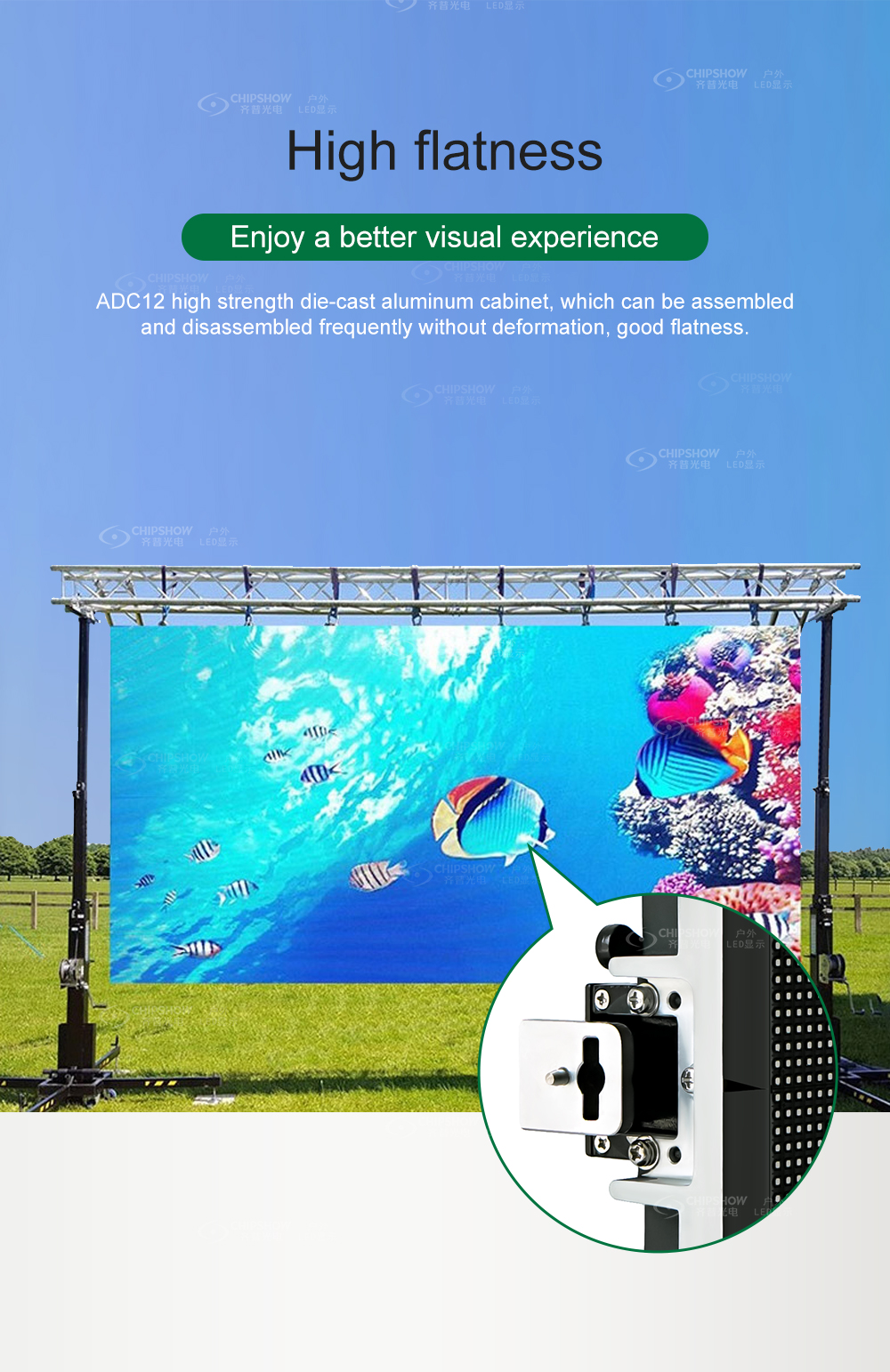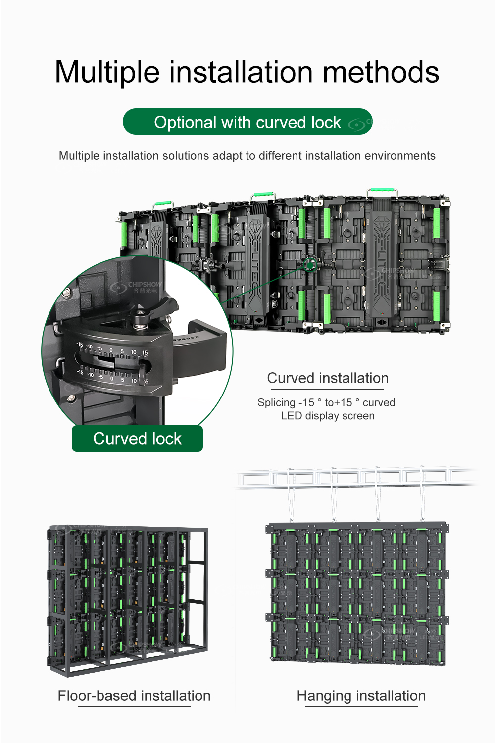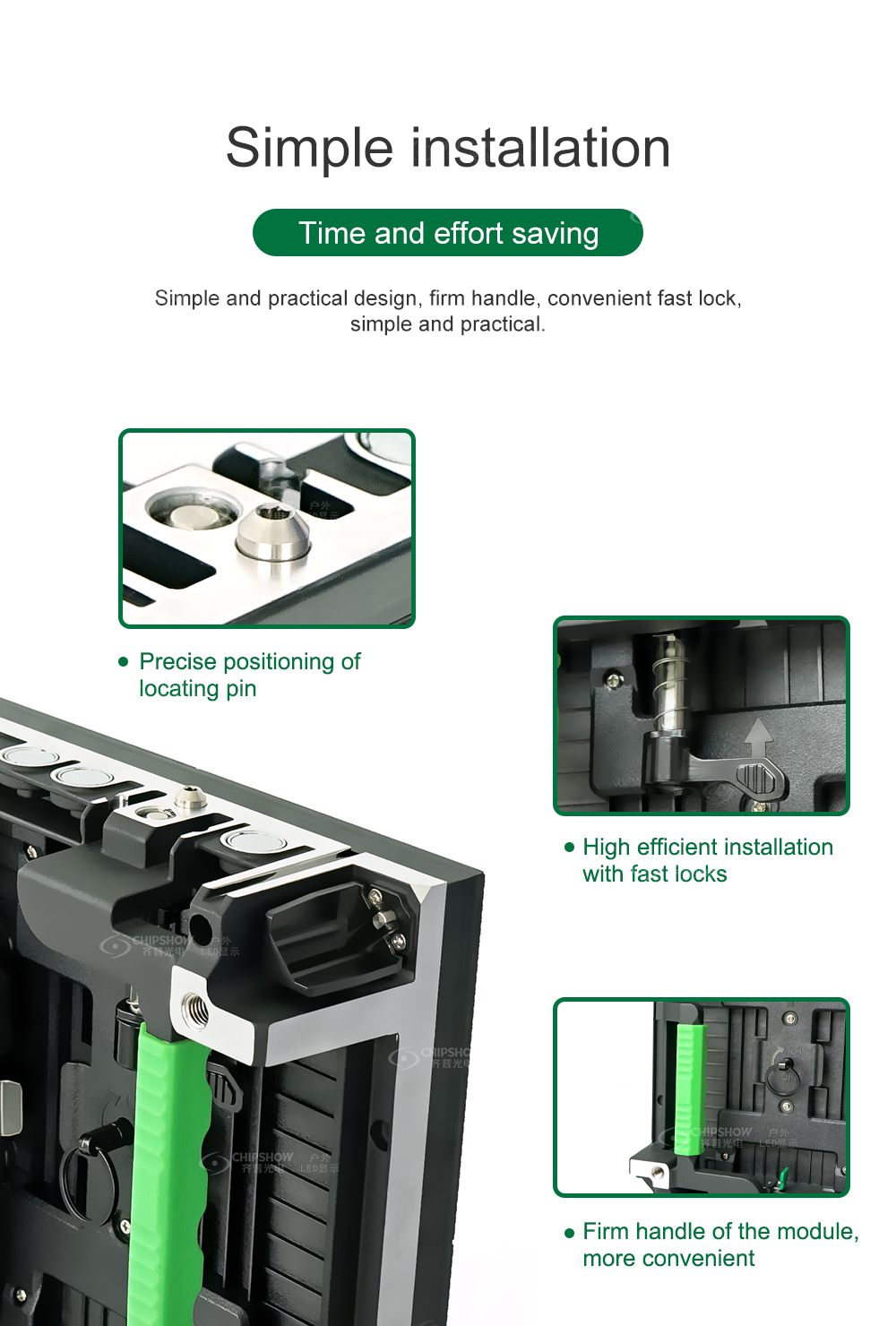 3 Solide et durable : chaque poignée est intégrée avec des raidisseurs horizontaux et horizontaux pour éviter la déformation lors de l'installation fixe et de l'installation suspendue pour une utilisation en location ;