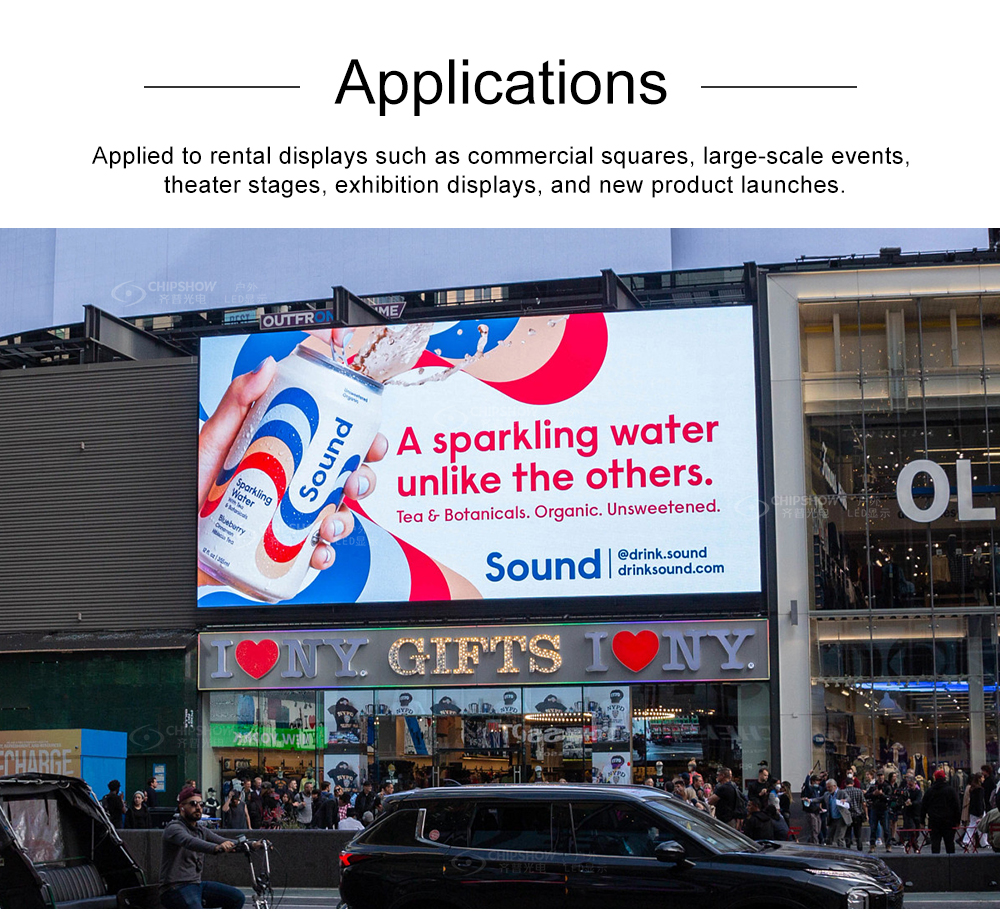 6 Large application : la série C-Lite-Plus est tout à fait adaptée comme écrans d'affichage LED de location pour les scènes de théâtre, les expositions, les lancements de produits, les places commerciales, les grands événements sportifs, etc.