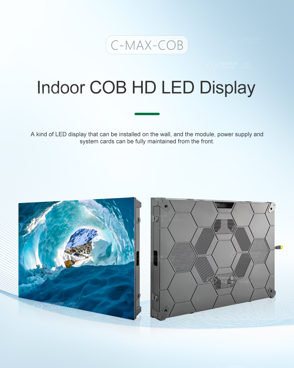 1 Haute fiabilité : les écrans LED de la série C-Max COB sont étanches à l'eau, à l'humidité et faciles à nettoyer ;