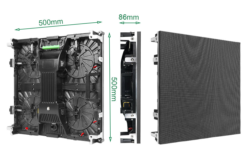 Caractéristiques du module : 1, facile : conception modulaire, assemblage et entretien faciles. 2, taille du module : 250 * 250 mm, surface lisse, espacement du module petit, haute précision Caractéristiques de l'armoire : ● Lumière : taille de l'armoire : 500*500*86 mm, poids : 8,5 kg/pièce. ● Mince : conception en aluminium moulé sous pression, haute précision, épaisseur de seulement 86 mm. ● Rapide : verrouillages rapides, faciles à assembler et à démonter. ● Compatibilité : pas de pixel disponible pour P2.6, P3, P3.91, P4, P5, P6. ● Faible : excellente conception de refroidissement, aucun ventilateur ni climatiseur requis silencieux, faible consommation d'énergie, rentable.