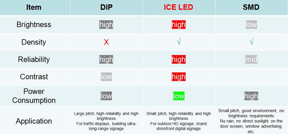 Examinons la comparaison complète entre les LED DIP, les LED SMD et notre LED ICE :