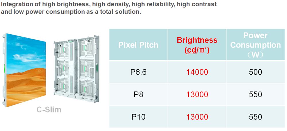 Avec la série C-Slim(ca), des solutions d'affichage extérieures haute densité P6.6 P8 avec une grande adaptabilité peuvent être obtenues ;
