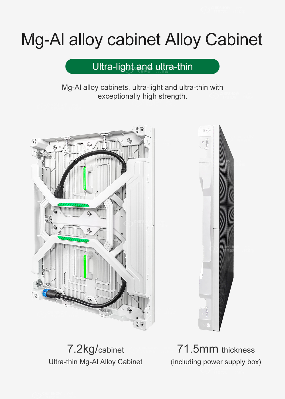 Ultra léger et fin : les armoires sont fabriquées en alliage de magnésium avec une excellente résistance ; chaque armoire (taille : 480 mm * 640 mm) ne pèse que 7,2 kg ;