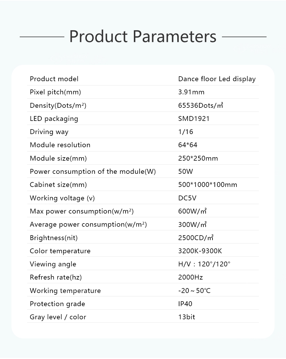 1 Étanche et résistant à l'humidité : la coque inférieure, le masque, le câble de signal et le câble d'alimentation sont tous équipés de matériaux résistants à l'humidité et à l'eau, et l'armoire est faite de matériaux à faible absorption d'humidité, le niveau d'étanchéité de l'avant et de l'arrière de l'armoire atteint IP40 ;