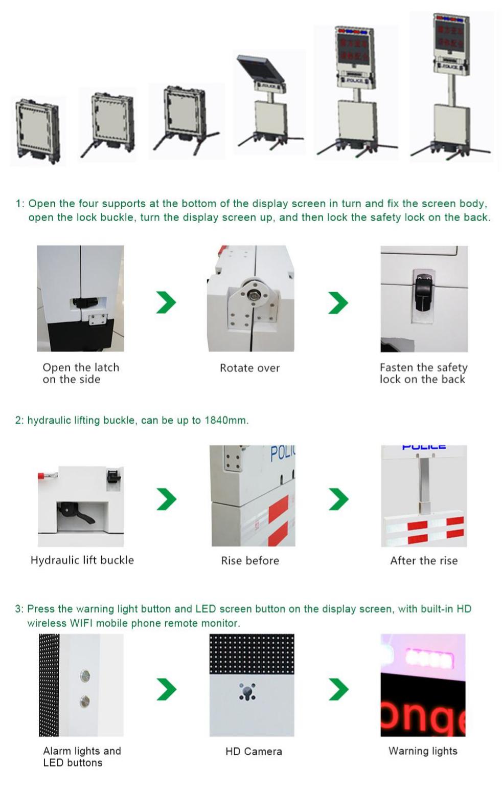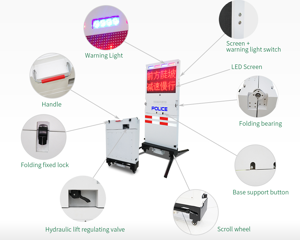 Le panneau d'avertissement de circulation portable est destiné aux scènes d'accidents de la route, aux points de contrôle de sécurité, aux inspections de conduite en état d'ébriété et à diverses urgences.