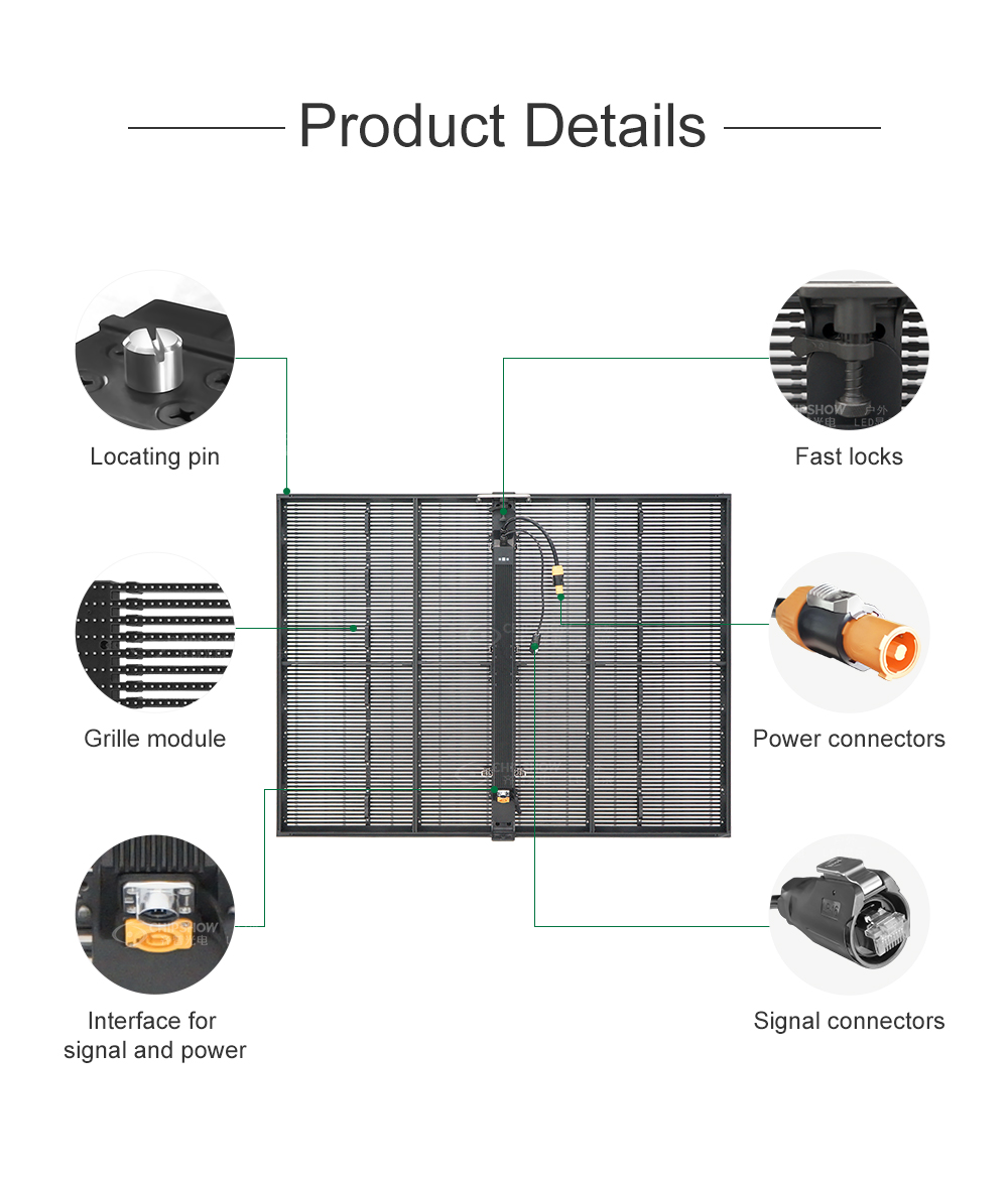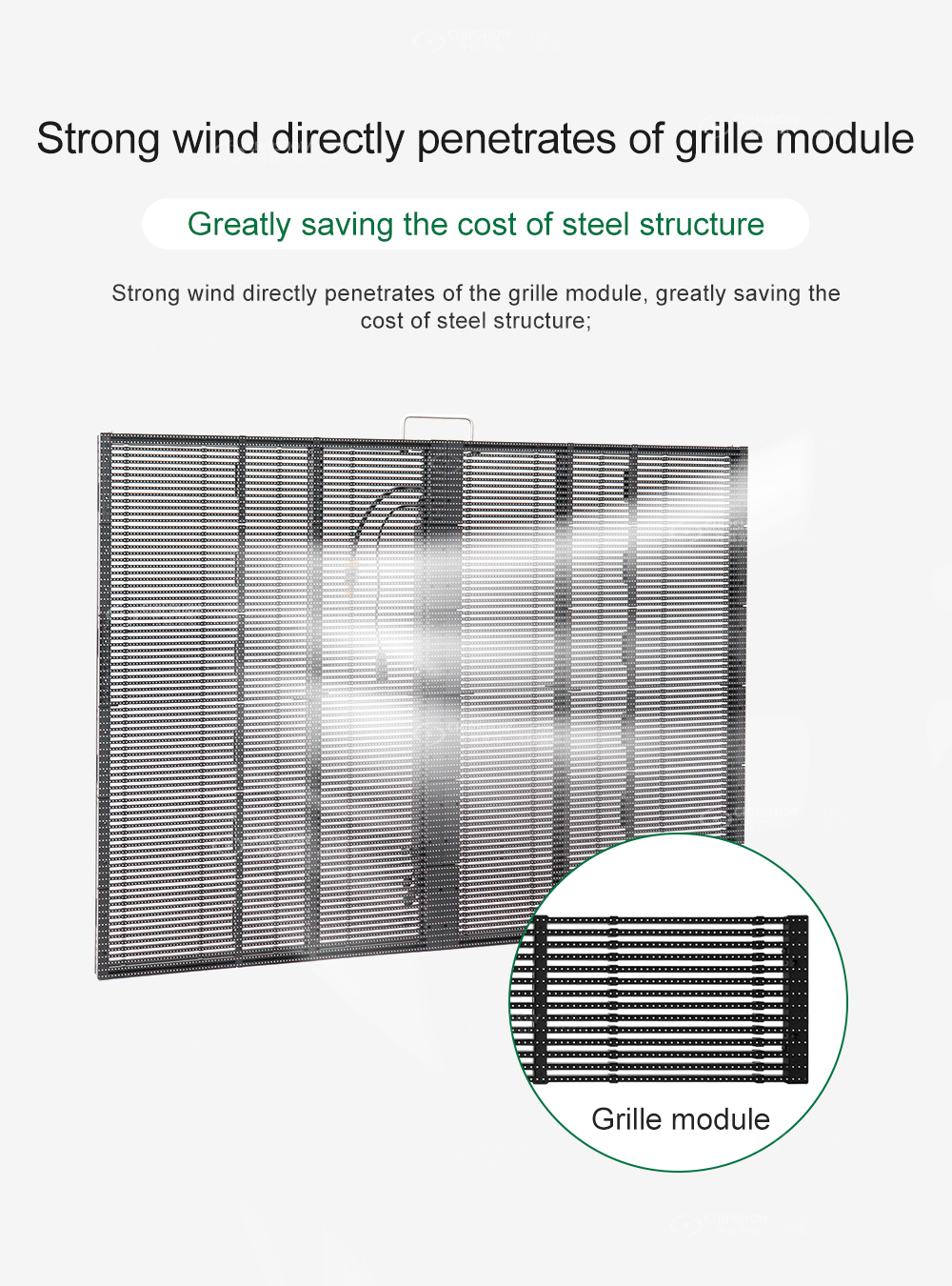 4 Ventilation élevée : les modules LED en forme de grille garantissent que le vent peut passer directement à travers les interstices entre les grilles ; cela vous fera économiser un coût important qui aurait dû être utilisé dans l'amélioration de la structure en acier ;
