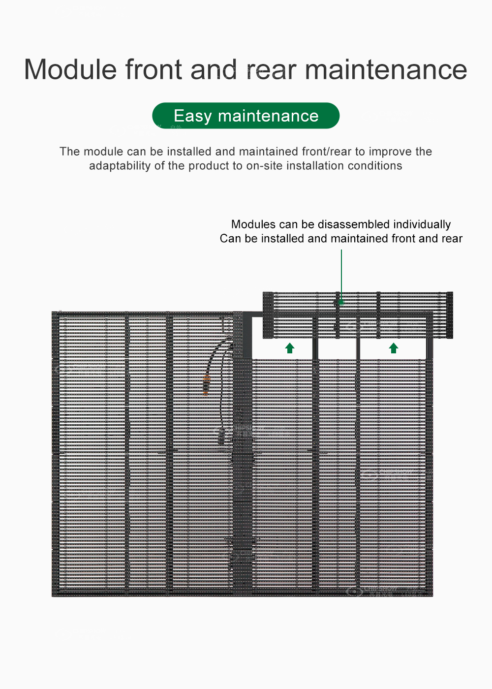 5 Entretien avant et arrière : vous pouvez installer et entretenir l'écran depuis l'avant et l'arrière, il a donc une exigence très lâche en matière de conditions d'installation sur site ;