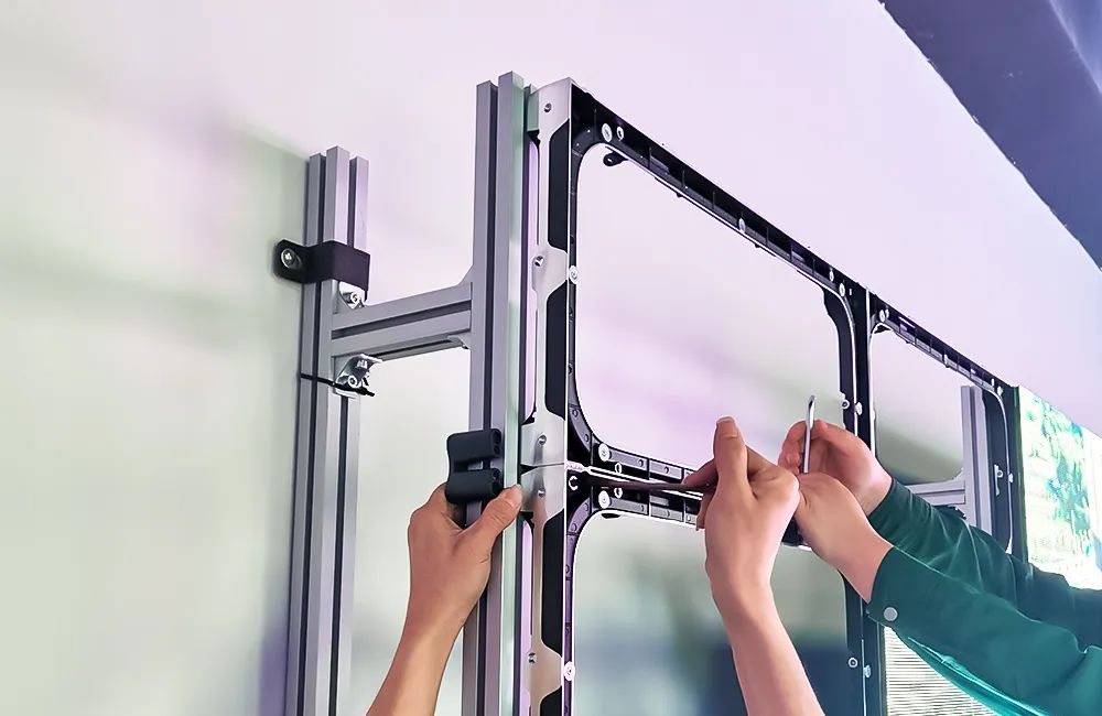 4. La structure d'assemblage et d'installation du produit adopte le tube carré standard mondial. Lors de l'installation, il vous suffit de fixer le tube carré au mur et d'utiliser un assemblage manuel pour connecter les dalles de l'écran. Il n’est pas nécessaire de refaire la boîte et la structure.
