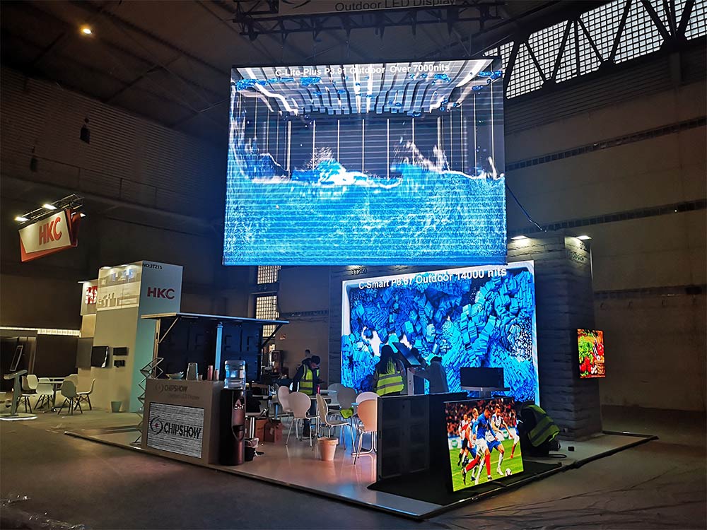 Chipshow a conçu le stand d'exposition en se concentrant sur certaines attentes majeures pour indiquer clairement aux utilisateurs de l'écran LED ce qui leur convient le mieux. Comme Chipshow aime toujours se dire que nous nous concentrons sur les fabricants d'écrans LED d'extérieur, vous trouverez donc certaines des meilleures solutions pour vos projets d'affichage LED d'extérieur. Voici quelques points que Chipshow a planifiés et exécutés tout au long du stand pour les solutions LED innovantes, telles que :