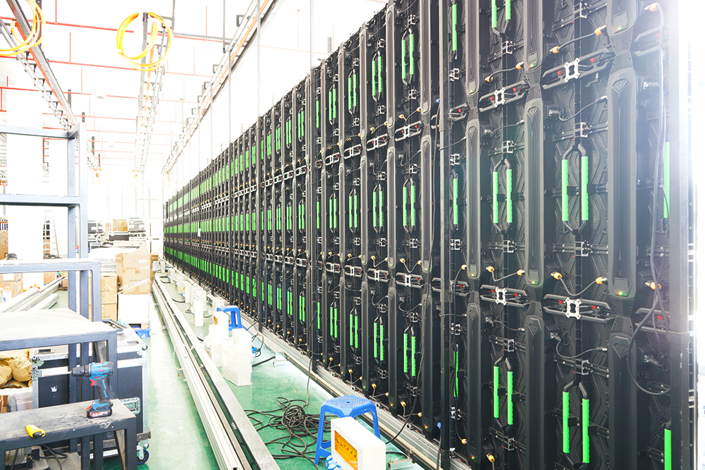 L'atelier de vieillissement au premier étage mesure 1500 mètres carrés, six lignes de vieillissement automatiques de 32 * 5 mètres, peut atteindre une capacité de production de 600 mètres carrés d'écrans LED avec un pas de pixel entre P2 ~ P31.25 par jour et 6000 mètres carrés par mois; avec un équipement d'étalonnage intelligent complet et une salle d'étalonnage, un équipement de pluie automatique, un équipement de vibration, un équipement de test à haute et basse température, etc., pour garantir la qualité du produit.
