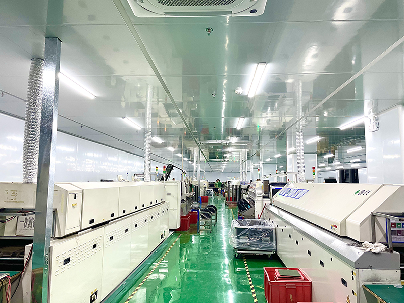 L'atelier SMD au troisième étage mesure 750 mètres carrés, 6 lignes de montage automatiques à grande vitesse Fuji et Samsung, avec une capacité de production quotidienne de 90 mètres carrés et une capacité de production mensuelle d'environ 2700 mètres carrés ; il dispose de 10 lignes de four entièrement constantes, de 4 lignes de soudage par refusion automatique et de 4 lignes d'équipement de test AOI entièrement intelligentes pour garantir la qualité du produit.