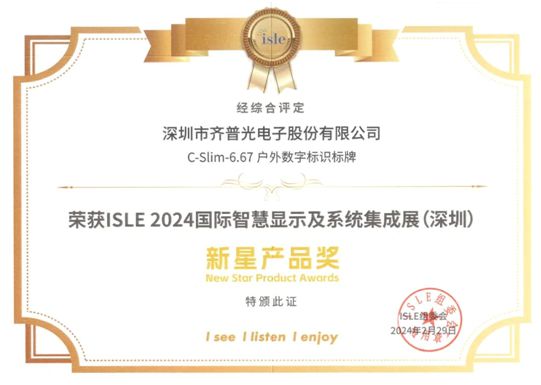L'écran lumineux C-Slim ICE a remporté le Rising Star Product Award.