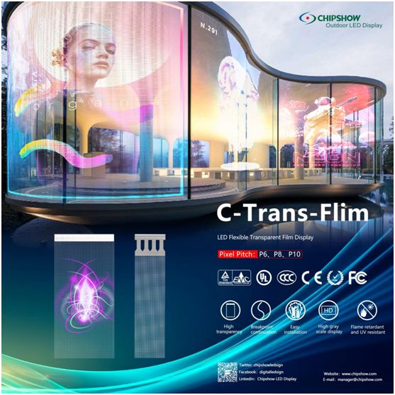 Chipshow possède également sa propre série d'écrans d'affichage LED transparents/holographiques. L'écran holographique LED est très approprié pour l'affichage commercial.
