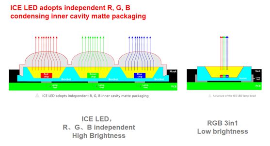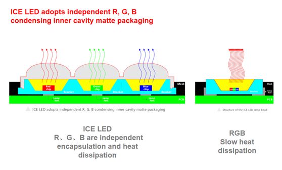 Les perles de lampe ICE de l'écran haute luminosité Chipshow utilisent également le principe de la lentille, mais par rapport aux lentilles ordinaires, il y a une petite différence.