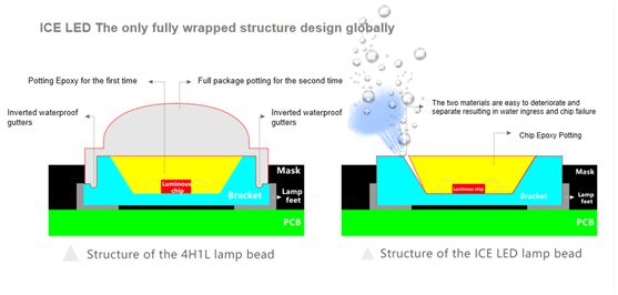 La puissance de l'écran de la lampe ICE est considérablement réduite par rapport aux perles de lampe courantes à montage en surface telles que 2 727 perles de lampe au même espacement.