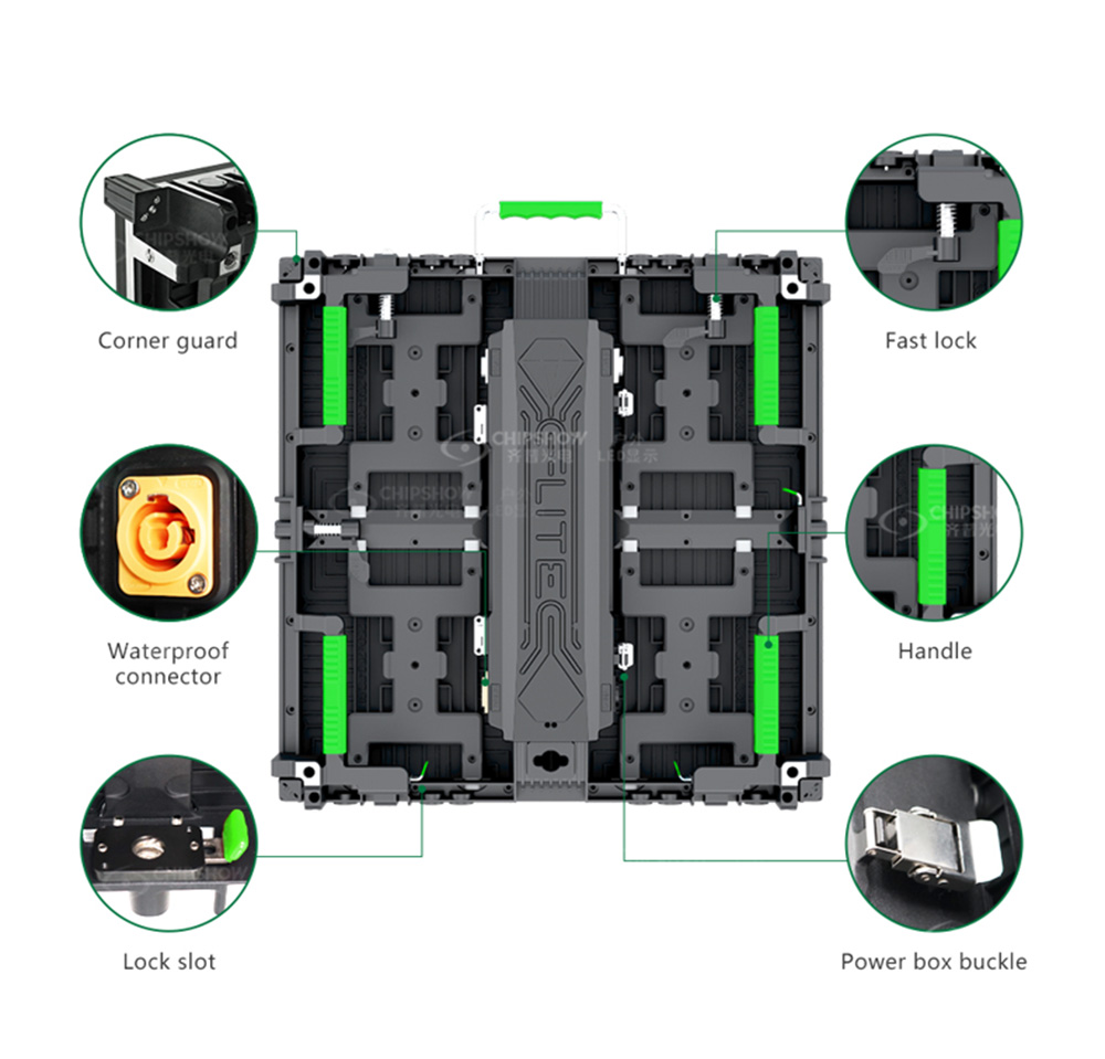 Haute planéité : C-Lite-Plus P1.56 adopte un boîtier en aluminium moulé sous pression ADC12 à haute résistance, qui ne se déformera pas même en cas de démontage et de montage fréquents, garantissant la planéité de l'écran.