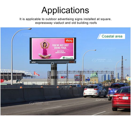Qu'il s'agisse d'un écran publicitaire commun ou d'un écran de circulation, la dissipation thermique, le poids et la sécurité sont des problèmes que les utilisateurs doivent prendre en compte. Cette conception résout intelligemment les problèmes des utilisateurs. Nous avons mentionné plus tôt qu'une résistance au vent plus faible offre une sécurité plus élevée pour les écrans à portique, les écrans à induction ou les écrans F dans les écrans de circulation. De même, même s’il s’agit d’un écran publicitaire courant, installé à haute altitude ou installé dans les zones côtières, le rôle de la faible résistance au vent est également très important.
