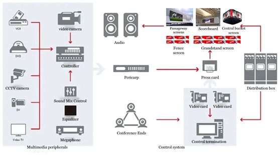 La solution comprend des écrans d'affichage à LED et leurs équipements, logiciels et matériels périphériques auxiliaires. Grâce à l'intégration organique des logiciels et du matériel, l'interconnexion et le contrôle collaboratif sont réalisés, répondant au contrôle centralisé et au contrôle de liaison de plusieurs scènes, plusieurs écrans, plusieurs appareils, plusieurs systèmes et plusieurs signaux, répondant aux besoins d'opérations commerciales simplifiées et flexibles, et aider à l'informatisation des événements sportifs et à la construction intelligente de sites sportifs.